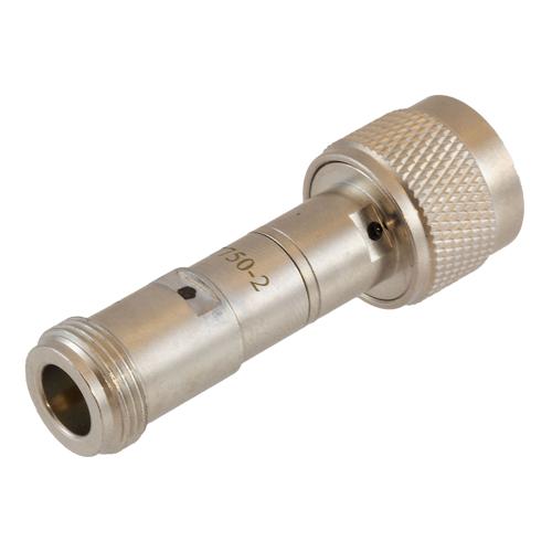 View full details2 dB Fixed Attenuator N Male (Plug) to N Female (Jack) DC to 12 GHz Rated to 2 Watts, Brass Body, 1.35:1 VSWR