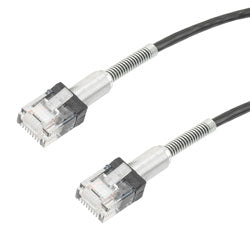 View full detailsCategory 6a 10gig Double Spring Slim Ethernet Cable Assembly, 30AWG Stranded, RJ45 Male Plugs with Spring Boots, CM Jacket, Black, 05FT