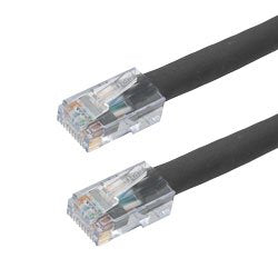 Category 5e Ethernet Cable Assembly, UTP Outdoor Industrial CMX-CMR-PLTC-2463 PVC, RJ45 Male, 22AWG Solid 300V PoE, Black, 250FT