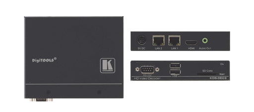 KramerOverview Specifications Cables Resources Kramer KDSDEC3 is an H.264 decoder for encoded signals up to 1080p60. It is designed to work with the...